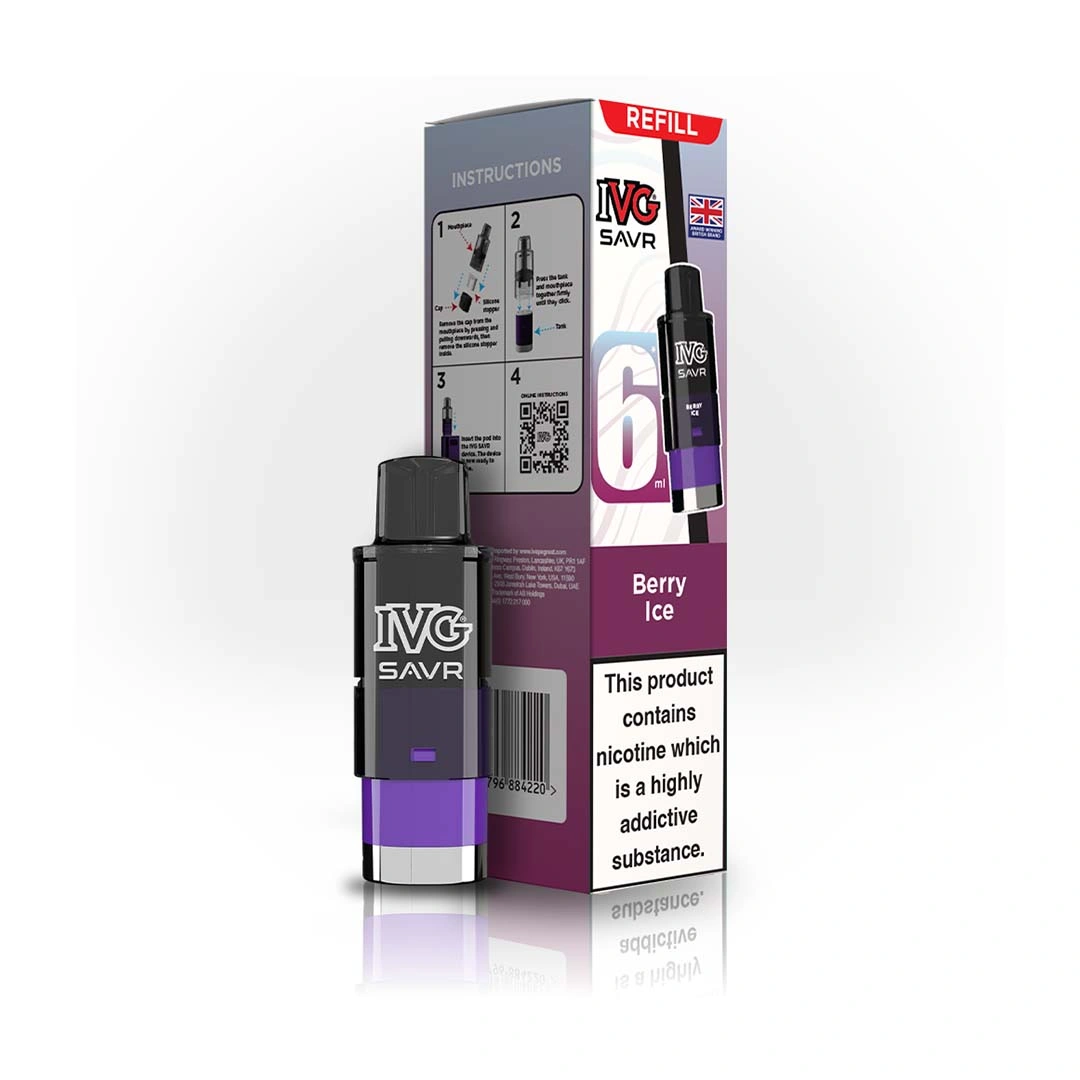 The Berry Ice IVG SAVR refill pods deliver a sweet and tangy mixed berry flavour with a cooling menthol twist. On the inhale, juicy berry notes come through, followed by a crisp, icy finish on the exhale, creating a smooth, refreshing, and consistently satisfying vape from start to finish.