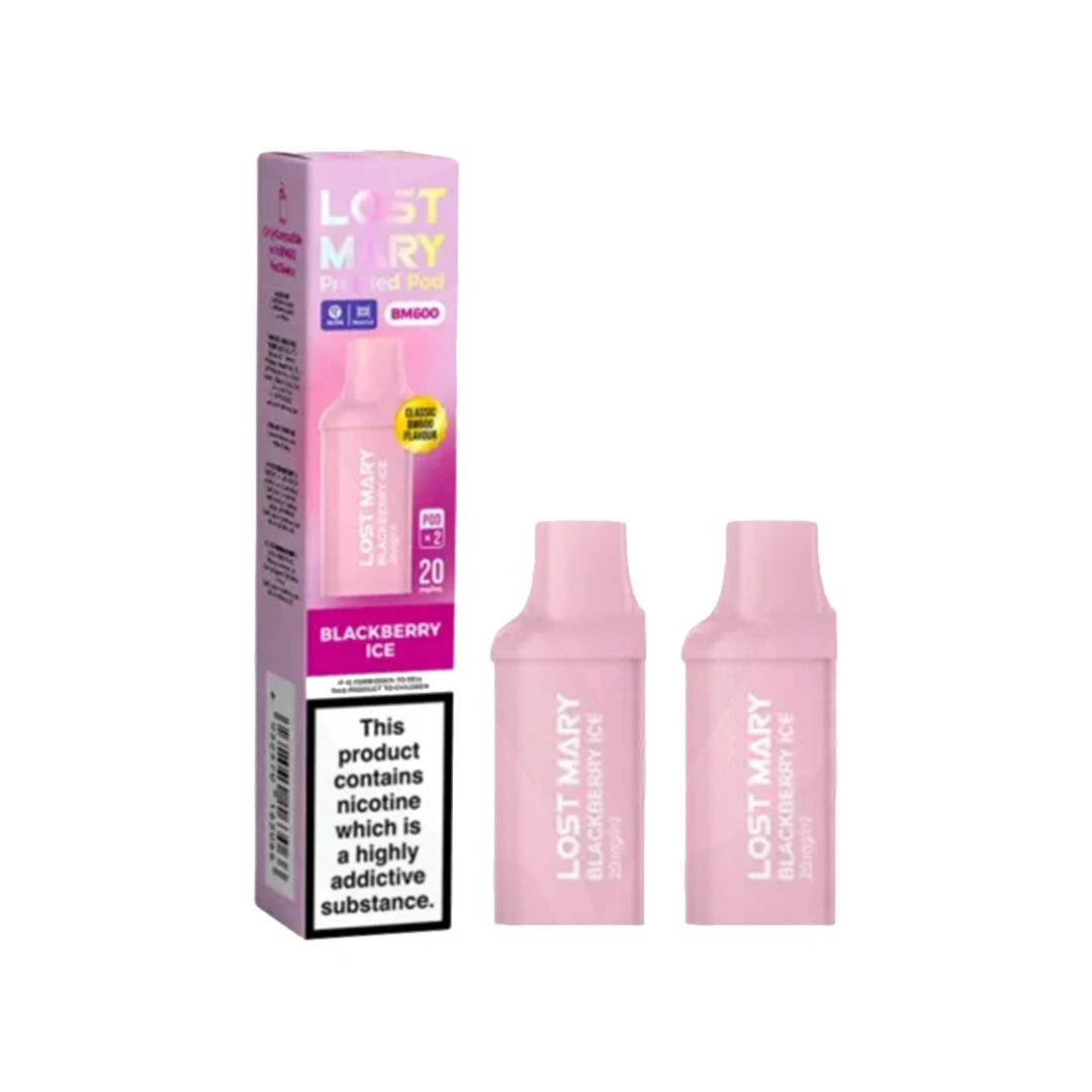 Lost Mary BM600 vape pods are made specifically for the Refillable Lost Mary BM600 pod kit. Each pack includes two 2ml prefilled pods with a smooth 20mg nic salt blend. They come in a wide range of flavours, including mint, menthol, ice, fruity, and soda-inspired options—many of which are fan favourites from the original Lost Mary disposables.