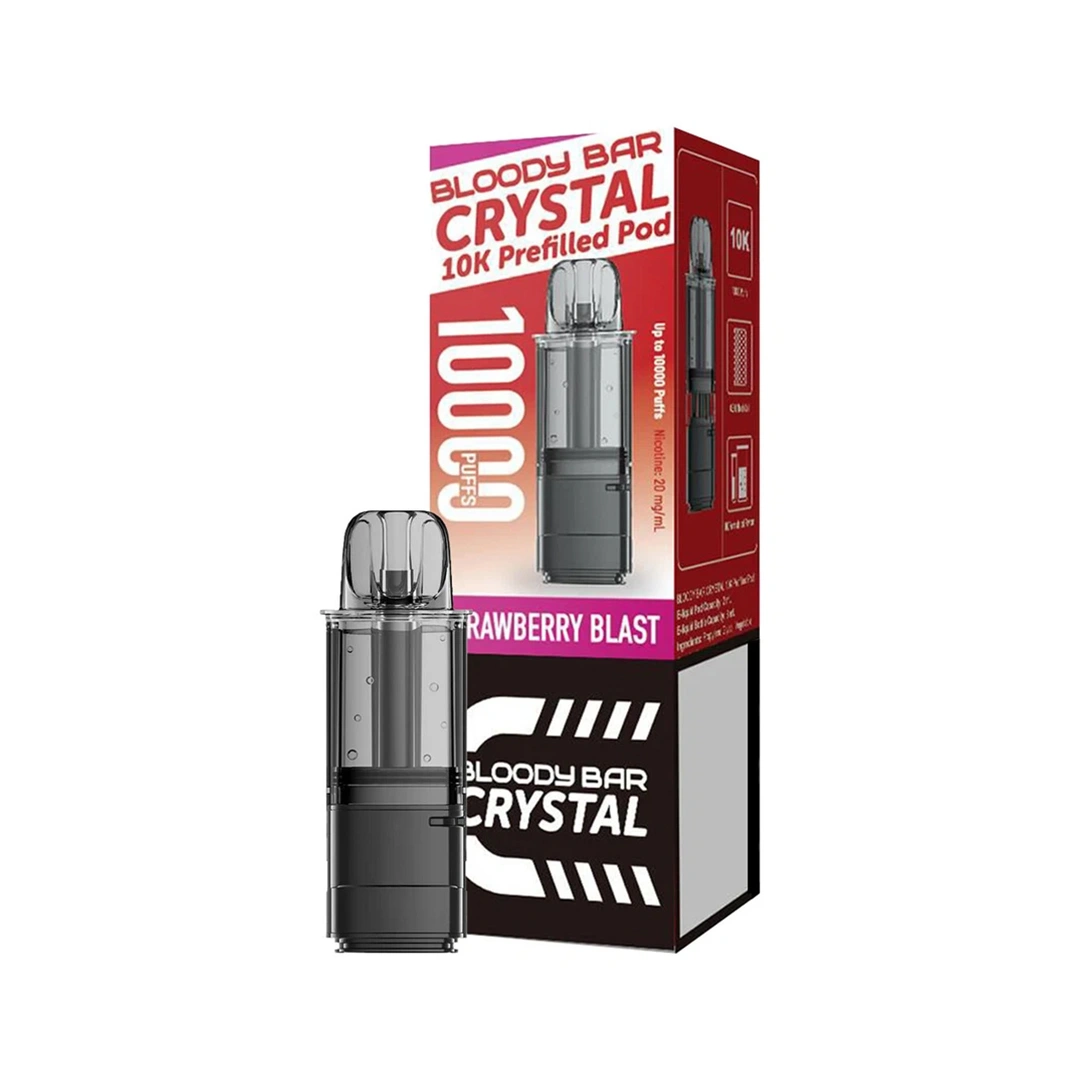 The Strawberry Blast Bloody Bar Crystal 10K Prefilled Pods deliver a sweet and juicy strawberry flavour. This smooth and fruity blend provides a refreshing and satisfying vaping experience with every puff.