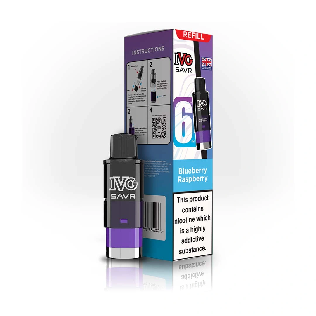 The Blueberry Raspberry IVG SAVR refill pods deliver a sweet and tangy mixed berry flavour. Juicy blueberry notes hit on the inhale, followed by tart raspberry on the exhale, creating a smooth, fruity, and consistently satisfying vape from start to finish.