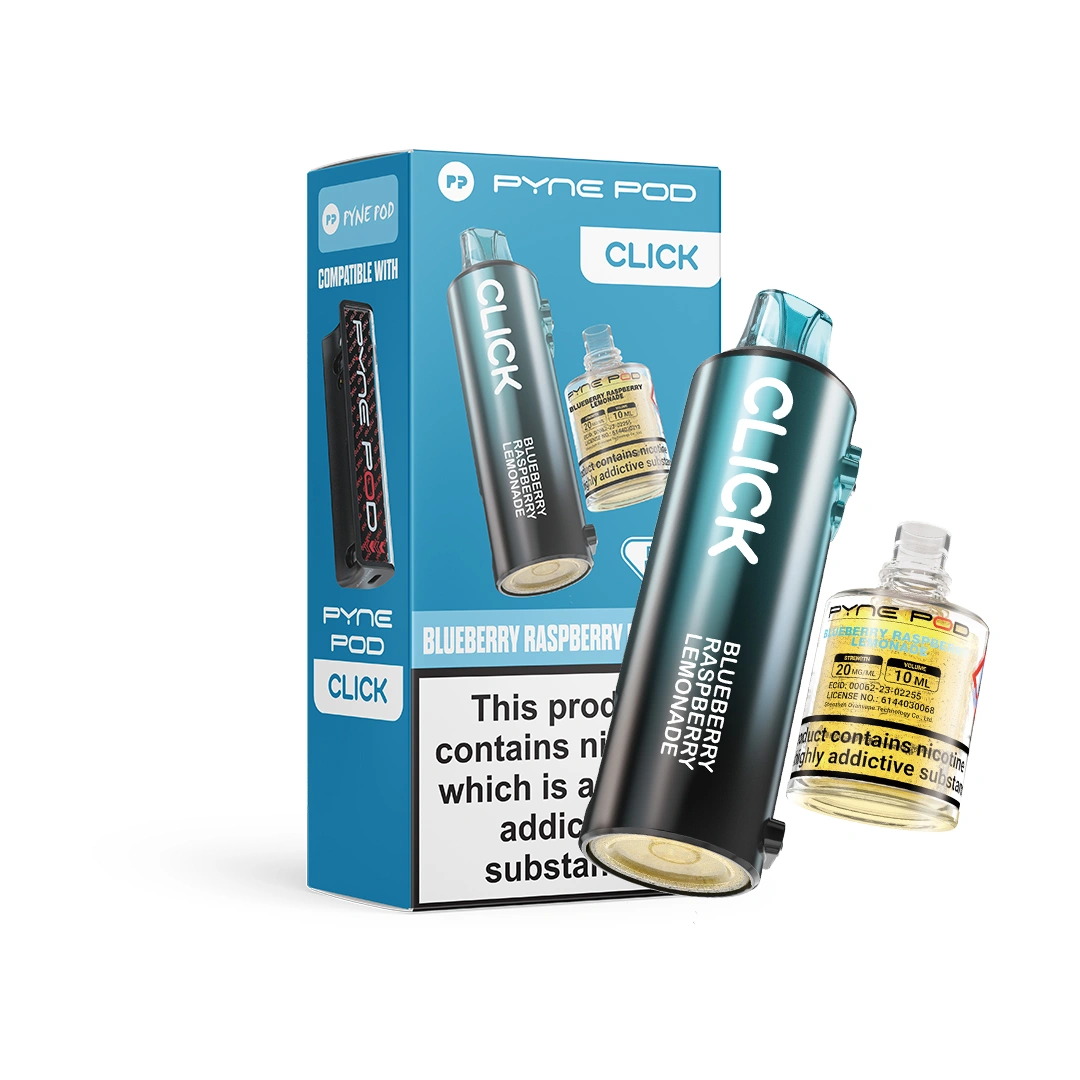 Pyne Pod Click Blueberry Raspberry Lemonade Refill Pods combine sweet blueberries and tangy raspberries with a zesty lemonade twist. Enjoy a bright, fruity, and refreshing vape with every puff.