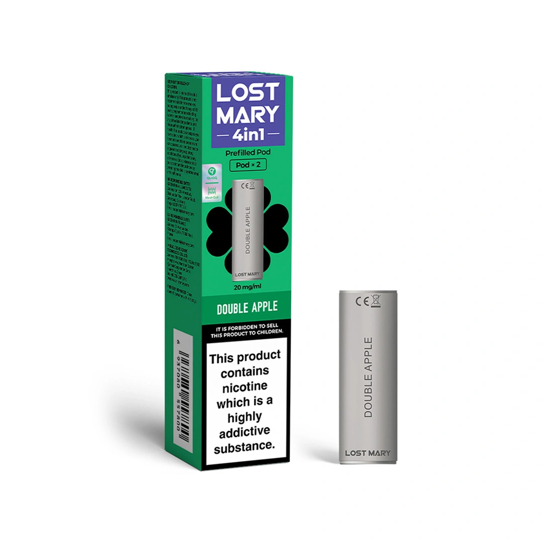 The Double Apple Lost Mary 4-In-1 prefilled pods blend crisp green apple with sweet red apple for a smooth, balanced fruit flavour.
