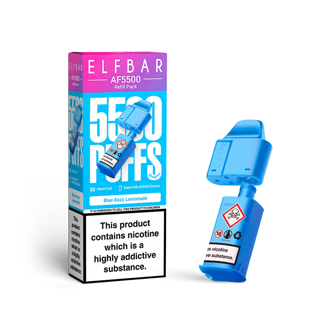 The Elf Bar AF5500 refill pack comes with a 2ml prefilled pod and a 10ml auto-refill container. Both are filled with 20mg (2%) nicotine salt e-liquid for a smooth and satisfying vape.