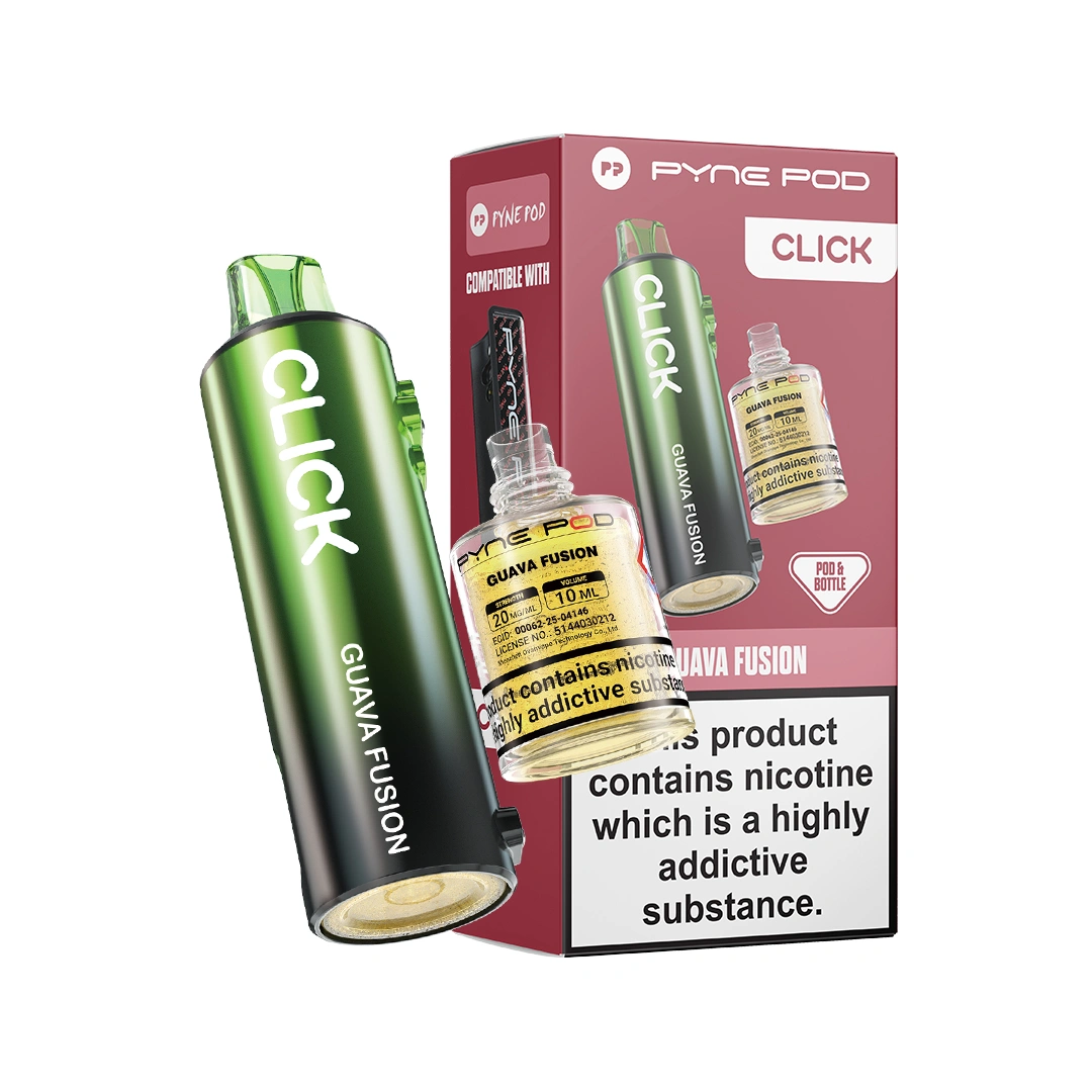 Pyne Pod Click Guava Fusion Refill Pods combine sweet, juicy guava with a mix of exotic fruits for a smooth and tropical blend. Enjoy a vibrant, fruity, and refreshing vape with every puff.