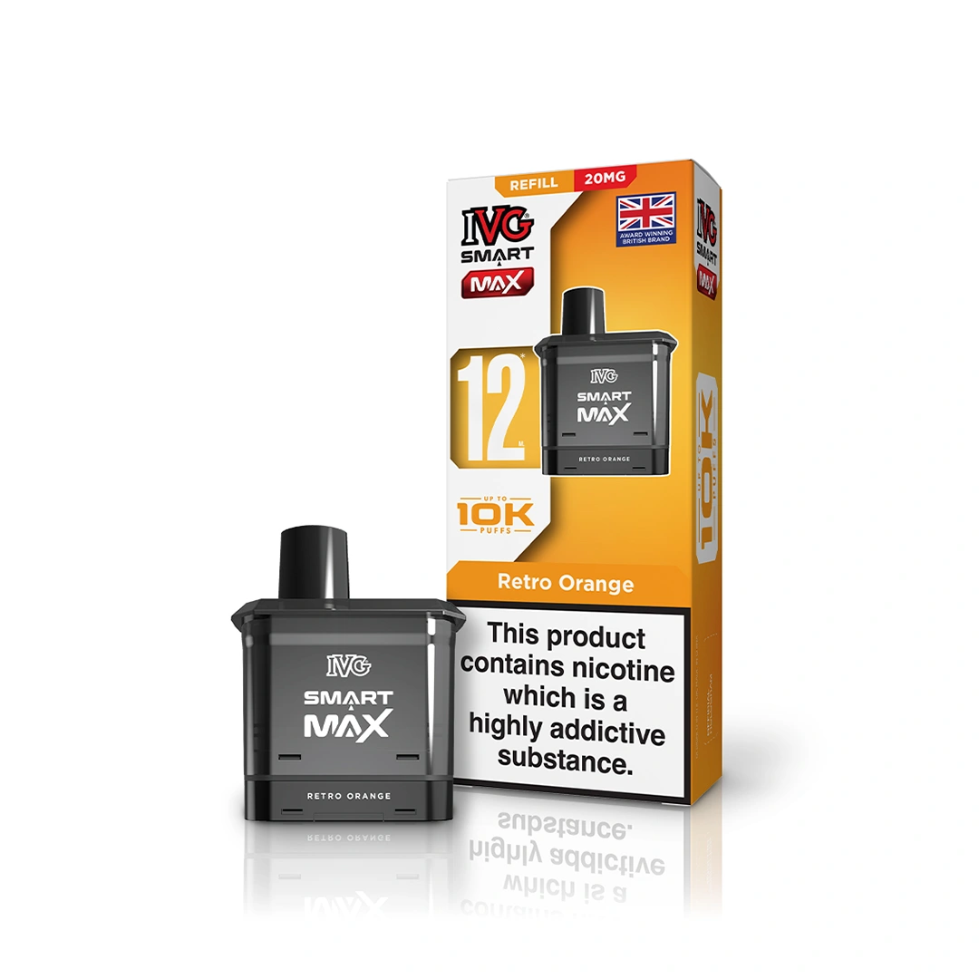 The Retro Orange IVG Smart Max refill pods deliver a sweet and tangy citrus flavour with a nostalgic twist. Bright, juicy orange notes hit on the inhale, followed by a smooth, slightly fizzy finish on the exhale, creating a vibrant and consistently satisfying vape from start to finish.