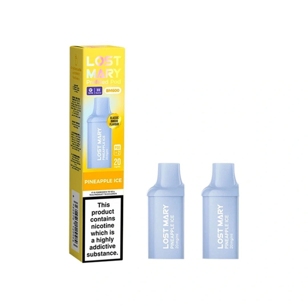 Lost Mary BM600 vape pods are made specifically for the Refillable Lost Mary BM600 pod kit. Each pack includes two 2ml prefilled pods with a smooth 20mg nic salt blend. They come in a wide range of flavours, including mint, menthol, ice, fruity, and soda-inspired options—many of which are fan favourites from the original Lost Mary disposables.