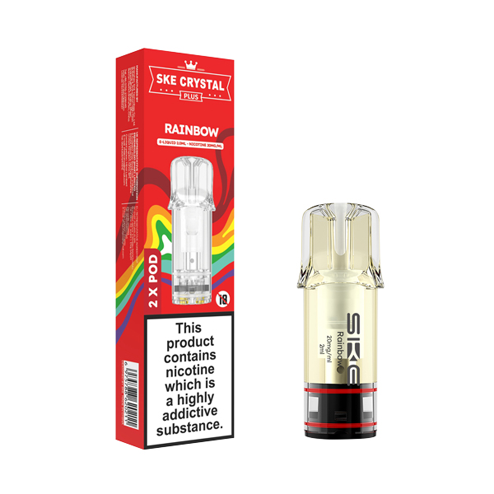 The SKE Crystal Plus Rainbow prefilled pods are designed to work perfectly with the SKE Crystal Plus prefilled pod kit. Each pod comes ready-filled with e-liquid, so you don’t need to refill or maintain anything, and dispose of it when it’s empty.