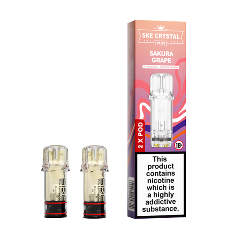 The SKE Crystal Plus Sakura Grape prefilled pods are designed to work perfectly with the SKE Crystal Plus prefilled pod kit. Each pod comes ready-filled with e-liquid, so you don’t need to refill or maintain anything, and dispose of it when it’s empty.